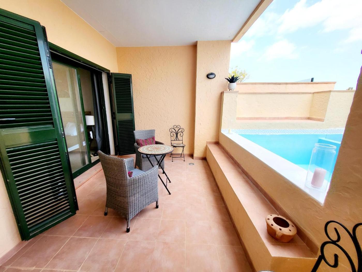 Apartamento de 2 dormitorios. The pool with a view is the standout feature of this apartment. Boasting a private entrance, this spacious apartment also comes with 2 bedrooms, a seating area and 2 bathrooms with a walk-in shower and a bath. Guests will find a stovetop, a refrigerator, a dishwasher and kitchenware in the kitchen. The apartment also includes a barbecue. The air-conditioned apartment features a flat-screen TV with streaming services, a washing machine, a tea and coffee maker, a dining area as well as garden views. The unit has 3 beds.
